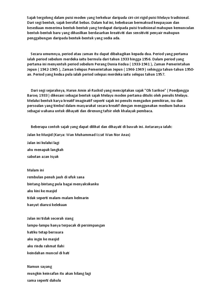 Contoh Sajak Bahasa Melayu - Sajak Minggu Bahasa Pdf. Posts about sajak melayu written by admin. Terdapat beberapa ciri sajak dalam puisi diantaranya adalah.